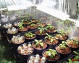 A demonstration Aeroponic 24 system. The trouble with demo hydro equipment is that everything grows so quickly. An extensive range of bottles on the left wall of the shop. Larger quantities are on the other side. A range of NFT trays in the shop. The outside of Esoteric Hydroponics in Martyr Road, Guildford and some old geezer carrying his shopping home from Sainsbury. The demo Aeroponic 24 system and the bottled nutrients. A view along the South facing front of the shop from the front door. There are plants in the window and boxes and demo lights underneath. Smaller items are kept in a cabinet. We know your type, sonny. Also shown is our growing range of highly reflective sheeting and some NFT equipment. This shelf on the right of the shop has 5 litre nutrient solutions. The demonstation system in the Esoteric basement (open to the public) growing tomatoes in the summer of 1998. A small hydro pod demo system in an unused fireplace in Esoteric Hydroponics. A previous webmaster in the Esoteric Hydroponic office. The basement with a new batch of tomatoes in the summer of 1998. The basement viewed from the stairs with extra reflective sheeting on the walls to increase efficiency. Possibly our first batch of Salvia divinorum, a sage-like herb. A closer view of the basement. Salvia divinorum growing in the acclaimed and exclusive Esoteric Hydroponic Hydro Pod system. Salvia divinorum growing in a Hydro Pod system located in the front of the shop where the Aeroponic 24 system used to be. A view of the Salvia divinorum from further away. No, its not dark in the shop, its the intensity of the air cooled lighting. A demo 48 pod system combining 2×24 pod systems. We can make larger systems if required. The custom made kabbalah mirror in the front of the hydro shop. We can contact the original craftsman of this mirror to produce this or other designs. Sacks of clay pebbles stored at Esoteric Hydroponics. We stock up to two tonnes of pebbles and we certainly get enough exercise moving them to and from storage.