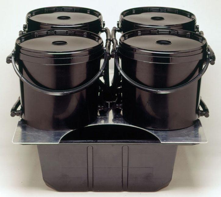A 4 pod aeroponic system with 1 site lids: