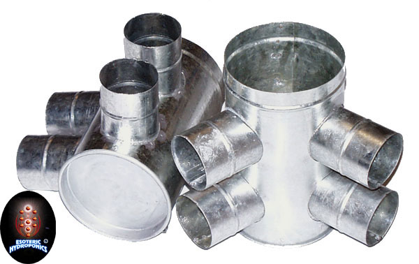 Two four way spigots are pictured. The two lines of 75mm diameter inlet vents are arranged about 100° apart, although products supplied may vary. Note the seal on the base of the can of the left spigot - like a tin can. Also note the apparent flaw on the inside of the right spigot. This is actually a welding artifact. At this position on the outside of the can is one of two fixtures for suspending the spigot with chain.