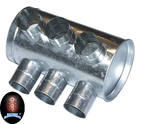 Pictured is a six way spigot on its side. Through some of the small inlet vents, the hollow inside can be seen.