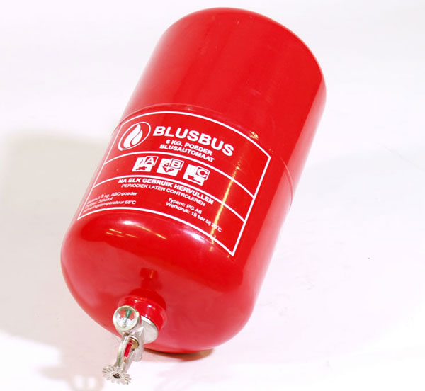 A automatic dry powder fire extinguisher designed to be fully automatic. The unit is a stored pressure type with a mixture of dry powder and nitrogen, as the fire reaches the temperature specified on the glass bulb it shatters allowing the dry powder to be released under pressure over a wide area.