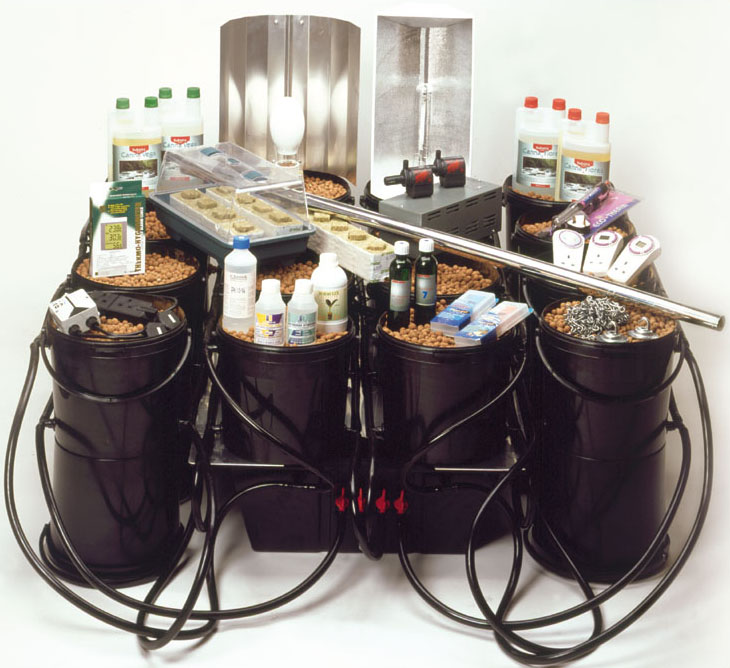 16 pod hydroponic flood and drain system, 600W high pressure sodium sont plus light, contactor relay & timer, heated propagator, 250W mercury blend propagation grow light, nutrients: grow, bloom & bloom boost, digital nutrient meter & calibration fluid, digital pH meter & calibration fluid, pH up & pH down, digital themo / hygro min / max meter, water heater, clay pebbles & rockwool blocks, hook plates & hanging chain 5m, 10m mylar reflective sheeting.